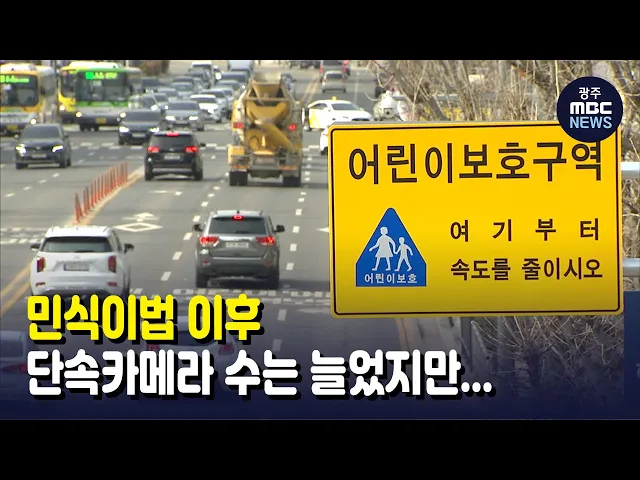 (앵커)스쿨존 단속카메라를 의무화하고 처벌을 강화하는 민식이법이 논란 속에서 시행된 지도 1년 반 가까이 흘렀습니다.전남지역의 경우, 스쿨존에 설치한 단속카메라 개수만 10배 늘었고, 단속 건수도 2만 건 넘게 증가했는데요.어린이 교통사고 사상자는 한 명 감소하는데 그쳤습니다.강서영 기자입니다.(기자)여수 신풍...