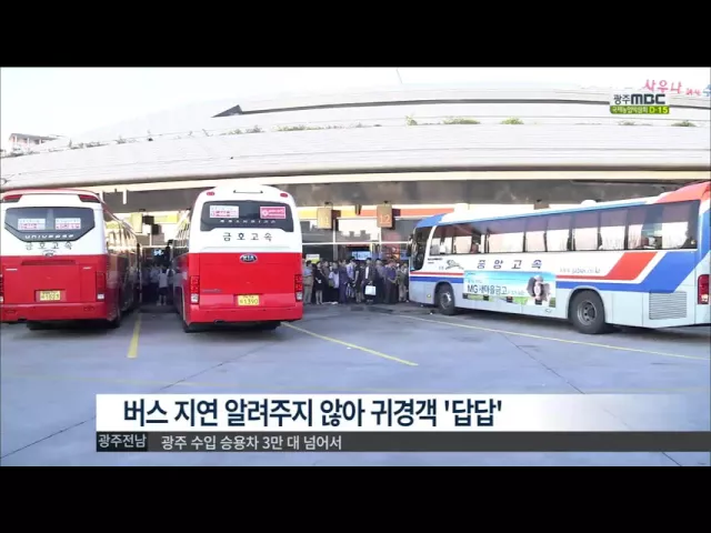 (앵커) 연휴 마지막날 고속도로는 비교적 잘 뚫렸는데 광주 광천터미널에서는 고속버스들이 뒤엉켜서 오도가도 못했습니다. 출발하는 사람이나 도착하는 승객이나 얼마나 답답했겠습니까? 왜 이런 일이 생겼는지 송정근 기자가 취재했습니다. (기자) 귀경객들로 버스터미널이 북새통을 이룹니다. 떠나야 할 고속버스가 제 ...