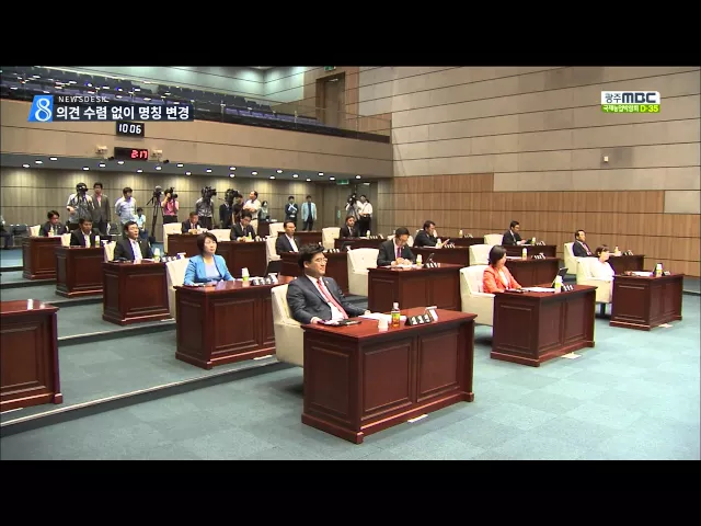 (앵커) 대학에 지은 U대회 경기장에는 이름이 붙어 있는데 광주시의회가 1년도 안돼 이 이름을 바꾸겠다며 조례안을 통과시켰습니다. 시민 공모로 결정한 이름을 왜 갑자기 바꾸냐는 볼멘 소리가 나오고 있습니다. 이계상 기자입니다. (기자) 대학안에 건립돼있는 U대회 체육시설의 명칭을 변경하는 조례안이 통과됐습니다....