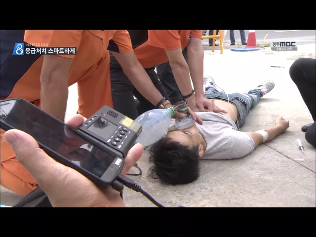 (앵커) 응급환자들은 초기 대응이 무척 중요해서 '골든타임'이라는 말도 있죠? 구급대원들이 스마트 기기를 이용해 의사의 지도를 받아 응급환자의 소생률을 높이는 시범사업이 광주에서 진행되고 있습니다. 김철원 기자가 취재했습니다. (기자) 한 남성이 의식을 잃고 갑자기 쓰러진 곳에 119 구급대가 도착합니다. 구급대...
