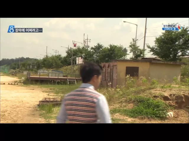 (앵커) 광주 극락강 둔치에 설치된 불법 컨테이너들이 골칫거리입니다. 평소에도 볼성사나운데 장마가 시작되면서 안전사고의 위험까지 있습니다. 송정근 기자가 현장 취재했습니다. (기자) 광주 극락강 둔치에 조성된 운동장입니다. 2만 볼트가 넘는 고압전선이 지나는 다리 바로 아래 컨테이너로 만들어진 사무실이 놓여 ...