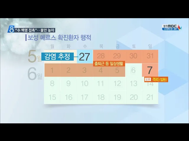 (앵커) 오늘도 메르스 뉴스를 집중적으로 전하겠습니다. 전남의 메르스 환자는 격리되기 전까지 수백 명을 접촉했습니다./ 보건당국의 공조는 아쉬웠고, 환자가 살던 마을은 뒤늦게 통제됐습니다.// 불안과 긴장이 번지는 분위기입니다./ 먼저, 메르스 환자가 언제 어디에서 누구를 만났는 지 또 위험은 없는 지부터 살펴보...