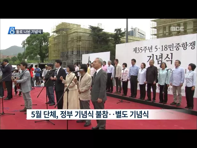 ◀ANC▶ 아시다시피 오늘은 5.18 민주화운동 35주년 기념일입니다. 3.1절, 광복절처럼 국가 기념일이기 때문에 당연히 기념식도 열렸습니다. 다만, 정부가 주관하는 기념식에 주인공들은 불참했고, 이들은 따로 기념식을 열었습니다. 같은 날, 같은 시간에 따로 열린 기념식, 먼저, 김인정 기자가 보도합니다. ◀END▶ 제...