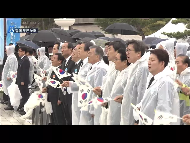 (앵커) 두 기념식의 차이는 임을 위한 행진곡을 합창하느냐 아니면 제창하느냐였습니다. 합창하겠다는 정부 계획 때문에 기념식이 둘로 나뉘었지만 양쪽에서 거의 모든 참석자들이 노래를 함께 불렀습니다. 김철원 기자입니다. (기자) 5.18 기념식의 마지막 식순인 '임을 위한 행진곡' 합창 순서가 되자 참석자들이 모두 일...