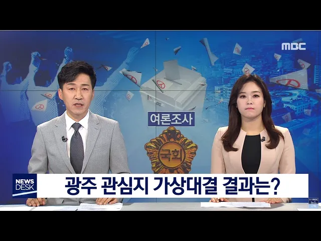 (앵커) 전남에서도 민주당 후보들이 비교적 우위에 있었습니다. 다만 6개 선거구 가운데 한두 곳은 야당의 현역 의원과 민주당 후보가 오차 범위 안에서 경쟁하는 것으로 나왔습니다. 이계상 기자... (기자) -- 나주 화순 선거구에서 민주당 소속으로 김병원 예비후보가 나설 경우 김 후보 39.9%, 안주용 예비후보 7.4% 였...