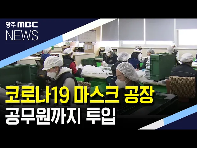 ◀ANC▶ 코로나19 사태 속에 마스크 제조 공장은 밤낮없이 돌아가고 있는데요. 일손이 달리다보니 공장에 공무원들까지 투입됐습니다. 양현승 기자가 취재했습니다. ◀END▶ ◀VCR▶ 전남 영암군 대불국가산업단지의 한 보건용 마스크 제조공장. 기계 설비를 거쳐 KF-94급 마스크가 쉴새없이 생산됩니다. 평소 하루 20만...