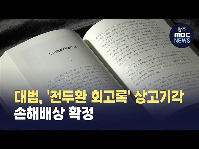 홈오늘의뉴스뉴스데스크뉴스투데이[한걸음 더]취재가시작되자광주MBC단독 당신을 위한 추천 주요뉴스 보험금 타내려고.. 허위진단서 발급한 치과의사 벌금형 17시 뉴스 32 17시 뉴스 2026.2.12 17시 뉴스 27 제주항공 참사 특별수사단, 무안공항 시공업체 등 압수수색 17시 뉴스 22 산책로 고양이 사체 훼손… 진보당 의원단 “엄정 수사 촉구” 17시 뉴스 22 '광주 광천상무선' 국토부 최종 승인..2029년 착공 국민의힘 지방선거 공관위원장에 이정현 전 대표 광주도시공사, "통합 특별법 수정안, 지방 분권 역행" 대법, '전두환 회고록' 상고기각...손해배상 확정 더불어민주당 광주시당, 지방선거 공약개발단 출범 산책로 고양이 사체 훼손… 진보당 의원단 “엄정 수사 촉구” 보험금 타내려고.. 허위진단서 발급한 치과의사 벌금형 광주도시공사, "통합 특별법 수정안, 지방 분권 역행" 광주전남행정통합 특별법..국회 행안위 소위 통과 더보기 많이 본 광주MBC뉴스 광주 산책로에서 토막 난 고양이 사체 발견..경찰 수사 뉴스투데이 1437 광주 10개 전통시장, 온누리상품권 환급 행사 뉴스투데이 701 광주 산책로에서 토막 난 고양이 사체 발견..경찰 수사 511 광주서 인플루엔자 유행 지속..기준보다 3배 웃돌아 뉴스데스크 497 아파트 담벼락 뚫고 주차장 돌진..1명 다쳐 뉴스투데이 496 설 앞두고 나주서 아프리카돼지열병.. 축산농가 ‘비상’ 뉴스투데이 435 민변 광주전남지부 "통합특별시, 주민투표 거쳐야" 17시 뉴스 422 [울산]선수 영입 완료 '웨일즈'‥ "아직 부족해" 뉴스투데이 399 [한걸음더]"시민에게 말장난 하나"...광주 2호선 도로포장 공사 '아직도' 뉴스데스크 382 "여객선 공영제" 특별법에 포함해야 뉴스데스크 332 '고무줄' 관광객 통계...통계 기관에 따라 '4배 차이' 뉴스데스크 331 "반지하 아파트" 논란...법원, 계약 취소 판결 뉴스데스크 287 더보기 최신 광주MBC뉴스 참사 1년 지나 재조사..희생자 흔적 다수 발견 뉴스데스크 1 이름 짓는 데만 '수천만 원'.. 반짝 상금 잔치 뒤엔 '나 몰라라' 뉴스데스크 1 전남광주 통합 특별법 행안위 소위 통과...벌써부터 "누더기 특별법" 비판 뉴스데스크 1 [NT:광주] 대법원 “전두환 회고록은 5·18 왜곡”... 9년 만에 '지연된 정의' 뉴스데스크 1 광주상의, 산업용 전기요금 '지역별 차등제' 촉구 뉴스데스크 0 산책로 고양이 사체 훼손… 진보당 의원단 “엄정 수사 촉구” 뉴스데스크 0 더불어민주당 광주시당, 지방선거 공약개발단 출범 뉴스데스크 0 국민의힘 지방선거 공관위원장에 이정현 전 대표 뉴스데스크 0 법원 "명절휴가비도 통상임금" 전남대병원 '267억 임금 소송' 패소 뉴스데스크 0 [시사용광로] 내홍 휩싸인 정치권… 호남 민심의 향방은? 뉴스데스크 0 더보기 인터뷰ON '화제의 인물을 만나다' [인터뷰온] 우원식 국회의장, "내란 극복의 완성은 5.18 개헌" 뉴스투데이 117 [인터뷰온] 비상계엄 민사소송 1심 승소판결 이끈 김정호 변호사를 만나다 뉴스투데이 298 [인터뷰온] 김도영 "40홈런-40도루 자신있다" 뉴스투데이 158 [인터뷰온] 이범호 감독 "V13 자신있다" 뉴스투데이 238 펄펄 끓는 [시사용광로] [LIVE] 정치 이슈 [시사용광로] I 2026년 2월 12일 시사용광로🔥 더욱 세부적인 계획 세운다면 “호남도 가능성이 충분하다” #shorts 시사용광로🔥 호남의 특산품 ‘반도체’ 뉴노멀의 시대가 올 것 시사용광로🔥 비수도권과 수도권이 동등하게 살아갈 수 있는 사회가 되길 #shorts 시사용광로🔥 이재명 대통령이 언급한 '남부권 반도체 혁신벨트'란? ㅣ광주MBC(26.02.05) 시사용광로🔥 분산되면 경쟁력 사라진다? “임계점에 도달했다고 생각” #shorts 시사용광로🔥 용인 반도체 산단 '전력문제' 제일 간단한 해결책은 호남권 이전? ㅣ광주MBC(26.02.05) 시사용광로🔥 국내 반도체 공장, 왜 다 수도권에 집중돼 있을까? ㅣ광주MBC(26.02.05) 시사용광로🔥 prev next 광주전남 행정통합 광주도시공사, "통합 특별법 수정안, 지방 분권 역행" 17시 뉴스 20 정부 무더기 반대..전남 핵심특례 31개 지키기 나서 뉴스데스크 124 광주전남 통합특별시 첫 도전과제 '2028 G20' 유치 17시 뉴스 38 "통합법 통과가 최우선"… 특례는 '한목소리', 현안엔 '온도차' 뉴스데스크 127 특별법 심사 돌입‥핵심 특례 반영 '총력전' 뉴스데스크 130 김민석 총리, 전남·광주 행정통합 TF 구성 17시 뉴스 64 “이름만 합치나” 권한 이양 거부하는 정부… 통합 특별법 ‘진통’ 뉴스데스크 99 행정통합 특별법 입법공청회서 정부 질타 이어져 17시 뉴스 55 광주MBC, 오늘(10) 오후2시 행정통합 타운홀미팅 생방송 17시 뉴스 65 전남 동부는 '산업', 서부는 '청사'에 초점 뉴스투데이 191 "실질 권한 달라"…광주·전남, 실질적 특별법 제정 촉구 뉴스투데이 42 신정훈, "'전남광주 통합특별시 특별법안' 추가 발의" 뉴스투데이 44 더보기 5.18 광주항쟁 대법, '전두환 회고록' 상고기각...손해배상 확정 대법원이 전두환 회고록이 5·18단체 등의 명예를 훼손했다며 손해를 배상해야 한다는 원심판결을 확정했습니다.대법원은 오늘(12일) 전두환 회고록에 대한 손해배상 청구 소송에서 피고 측의 상고를 기각... 17시 뉴스 15 '전두환 회고록 출판 금지' 내일 대법원 선고 17