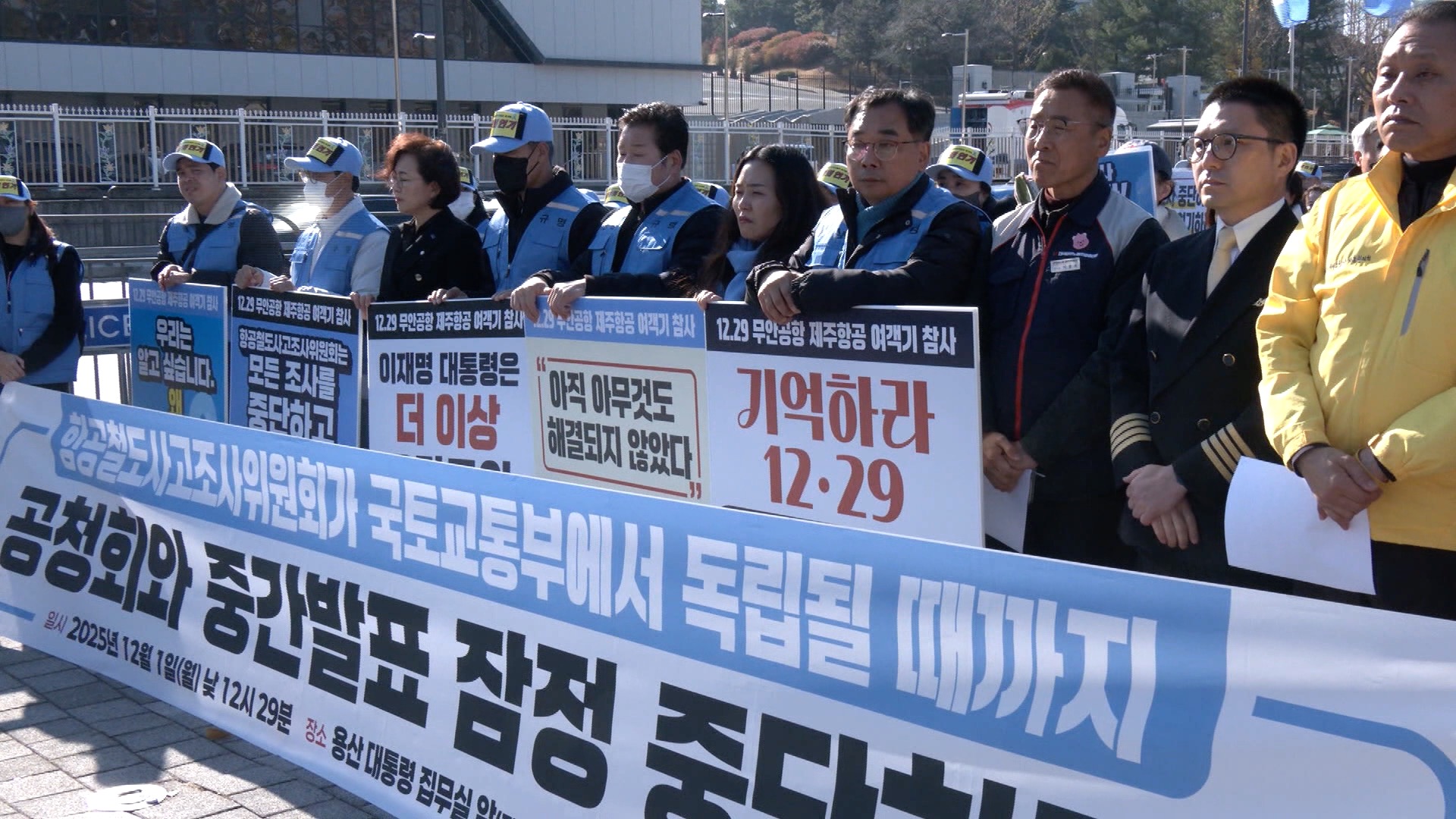 12·29 제주항공 참사 유가족 협의회가항공철도사고조사위원회가 주관하는 공청회 중단 요구가 받아들여지면서,지난 1일, 서울 대통령실 앞에서 이어온 노숙 농성을 종료했습니다.유가족들은 사고 여객기 잔해의 전면 재조사와국토교통부로부터 사고조사위원회의 독립,조사위의 재조직과 전문성 확보 등을향후 과제로 제시했...
