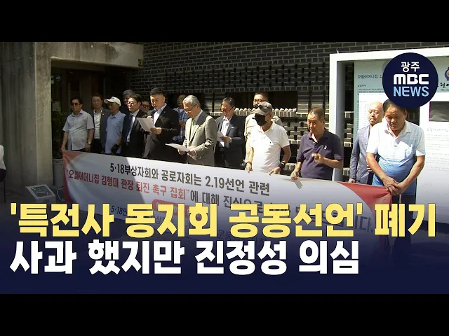 (앵커)지난해 5.18 부상자회 등이 특전사 동지회와 화해하고 포용하는 모양새를 취하면서지역 사회에 큰 파장을 일으켰죠그런데 해당 단체들이1년 6개월여 만에 이같은 입장을 폐기하고공식적으로 사과했습니다.하지만 다른 오월 단체들은진정성이 의심된다며싸늘한 반응을 보였습니다.보도에 김영창 기자입니다.(기자)지난...