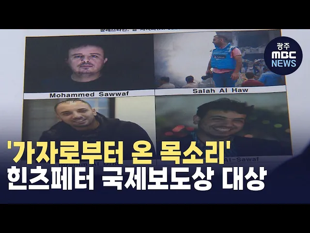 이스라엘-하마스 전쟁 발발 이후 가자 지구 주민들의 삶을 취재한 알 자지라 TV 언론인들이 2024 힌츠페터 국제보도상 대상을 받았습니다.2024 힌츠페터 국제보도상 조직위원회는 어제(10) 5.18 기념재단에서 기자회견을 열고 '가자로부터 온 목소리'를 보도한 모하메드 사와프 등 알 자지라 TV 영상 기자 4명을 대상 수상...