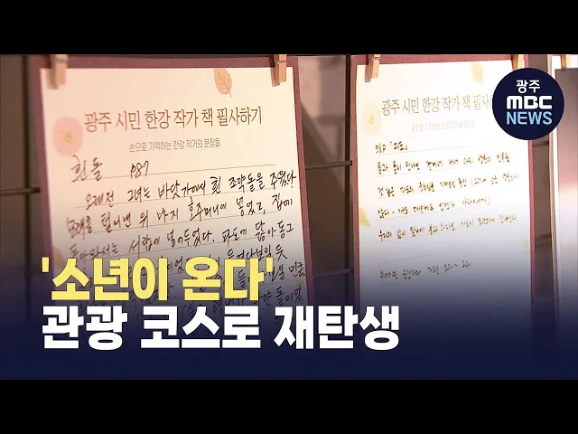 (앵커)한강 작가의 소설'소년이 온다'의 배경이 된 장소들이 관광 코스로 재탄생했습니다.5.18 45주년을 맞아 광주시가 소설 속 주요 장소를 탐방하는'소년의 길' 인문 투어를 마련한 건데요.투어 참여는이번 주말부터 가능합니다.천홍희 기자가 보도합니다.(기자)광주 북구의 중흥 도서관.한강 작가의 소설 소년이 온다에 ...