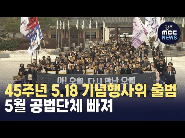 (앵커)5.18민주화운동 기념일이이제 두 달여 앞으로 다가왔습니다.올해 45주년을 맞는 만큼기념행사위원회는 각별히 신경 써서 기념식을 준비하고 있는데요.하지만 5.18 공법 단체들이 행사위원회에서 빠져있어,반쪽짜리 출범이라는 오명을 피하기 어렵게 됐습니다.김초롱 기자의 보도입니다. (기자)거대한 태극기와 5월을 ...