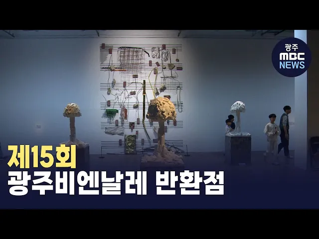 (앵커)지난달 개막한 제15회 광주비엔날레가 86일 간 대장정의 반환점을 돌았습니다.20만명의 관객이 전시를 관람했고 노벨상을 수상한 한강 작가와 광주비엔날레의 인연이 주목을 받기도 했습니다.박수인 기자가 보도합니다. (기자)검은 터널 같은 통로를 지나는 동안 나이지리아 어느 도시의 온갖 소리들이 귓전에 부딪힙...