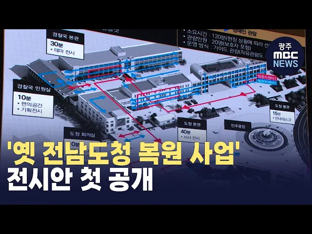 5·18민주화운동 최후 항전지 였던옛 전남도청의 원형 복원과 관련해 내부 전시안 등이 오늘(26) 처음 공개됐습니다.옛 전남도청 복원추진단과 광주시 등은오늘(26) 광주 동구 전일빌딩에서 '옛 전남도청 복원 사업 전시안 공개설명회'를 열고 도청 본관과 상무관 등 6개 동에담기는 전시 콘텐츠의 유형과 성격, 표현 방법 ...