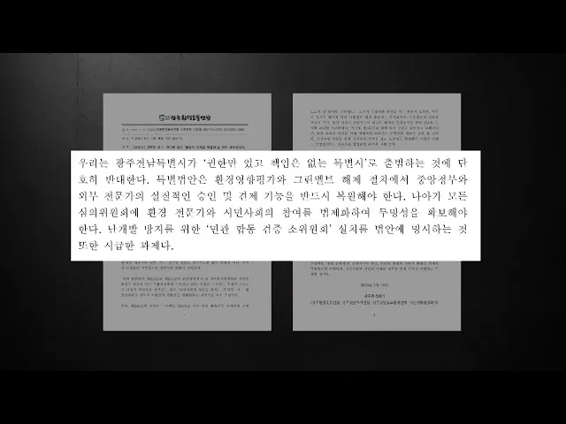 광주환경운동연합은 성명을 내고 생태 가치가 배제된 현재의 특별법안에는 반대한다는 입장을 밝혔습니다.단체는 행정통합 자체는 찬성한다고 전제하면서도 환경영향평가 권한을 사업 주체인 단체장에게 넘기는 것은 '합법적 난개발'을 부추기는 꼴이라며 비판했습니다.이어 개발제한구역 해제와 산지 개발 허용 등의 독소 ...