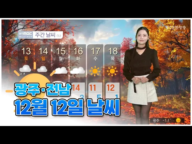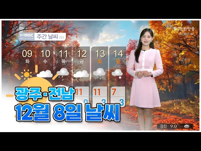 오늘 어제에 비해 기온이 큰 폭으로낮아지겠습니다.한낮기온은 어제보다 2도 가량 낮은 수준이지만광주의 아침기온 영하권으로 곤두박질 하면서어제보다 무려 8도 가량낮을 것으로 예상되고요.전남 곳곳에서도 어제보다 많게는10도 가량 낮은 기온 보이면서광주와 전남 북서부 지역을 중심으로한파주의보가 발효중입니다.급...