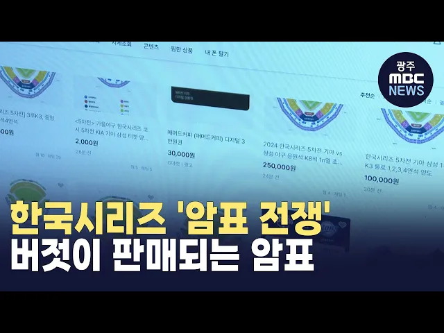 (앵커)광주에서 7년 만에 한국시리즈가 열렸습니다.어제(20)부터 예매가 시작됐는데, 여전히 정가보다 5배나 비싸게 파는 암표가기승을 부리고 있습니다.암표 거래가 반복되고 있고경찰도 단속을 한다고는 하지만온라인에선 보란 듯이 암표가 판매되고 있습니다.천홍희 기자가 취재했습니다.(기자)프로야구 한국시리즈 1차...