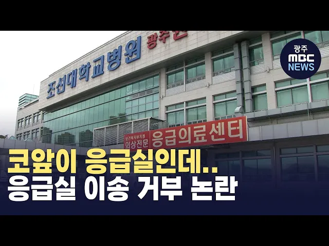 (앵커)응급실마다 의사가 부족해 비상인 가운데 어제(5) 조선대에서는학교에서 심정지 상태로 발견된 여대생이 바로 옆 조선대병원 응급실을이용하지 못하는 일이 일어났습니다.조선대병원이 여건이 안 된다며 환자 이송을 거부했기 때문입니다.천홍희 기자가 보도합니다.(기자)조선대학교 캠퍼스에 있는 벤치에 폴리스라인...