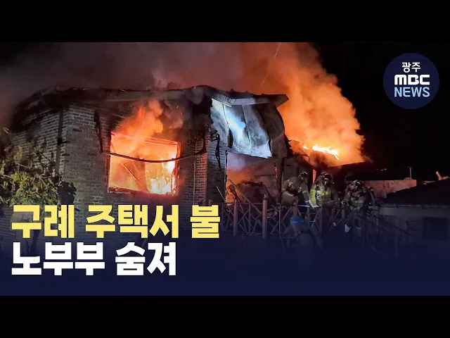 오늘(6) 새벽 4시 20분쯤구례군 광의면의 한 단독주택에서 불이 나 91살 최모씨 등 노부부가 숨진 채 발견됐습니다.불은 1시간 여만에 꺼졌고 주택이 모두 불에 탔습니다.경찰은 노부부가 거동이 불편해 미처 대피하지 못한 것으로 보고 다음주 소방당국과 함께 정확한 경위를 조사할 예정입니다.