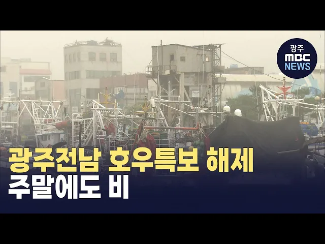 광주전남에 내려진 호우특보가 오늘(19) 오전에 모두 해제됐지만, 이번 주말에도 비는 계속될 것으로 보입니다.광주지방기상청에 따르면이번 주말은 대체로 흐린 가운데 내일(20) 새벽부터 광주전남에 30~80mm의 비가 내리겠습니다.기상청은 비가 내렸다 그쳤다를 반복하다 일요일 오후부터 차차 그칠 것으로 내다봤습니다....