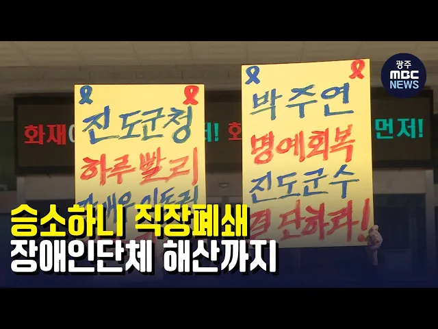 (앵커)직장내 괴롭힘 피해자가 소송에서 승소하자 직장폐쇄로 맞대응 한 사업주가 있습니다. 진도군 시각장애인 연합회에서 벌어진 일인데요, 관계기관의 시정요구에 장애인 단체를 해산하는 황당한 대응을 하고 있습니다. 신광하 기자가 보도합니다.(기자)/ 하루빨리 정상화 하라../ 시각장애인연합회 진도군지회 소속 회...
