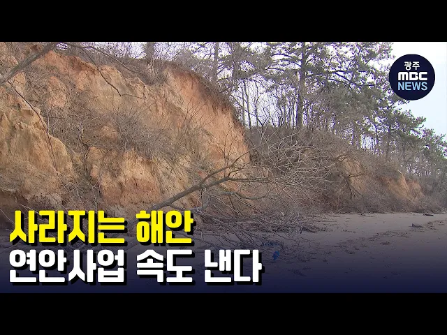 (앵커) 전남은 전국에서 가장 긴 해안선을 끼고 있는데요. 기후변화로 해수면이 올라가면서 해안 침식도 빨라지고 있어 자치단체들이 대책 마련에 고심하고 있습니다. 문연철 기자가 취재했습니다. (기자) 무안의 한 바닷가, 수백 미터에 걸쳐 곳곳이 무너져 절벽이 됐고 나무들은 쓰러졌거나 아슬아슬하게 매달려 있습니다...