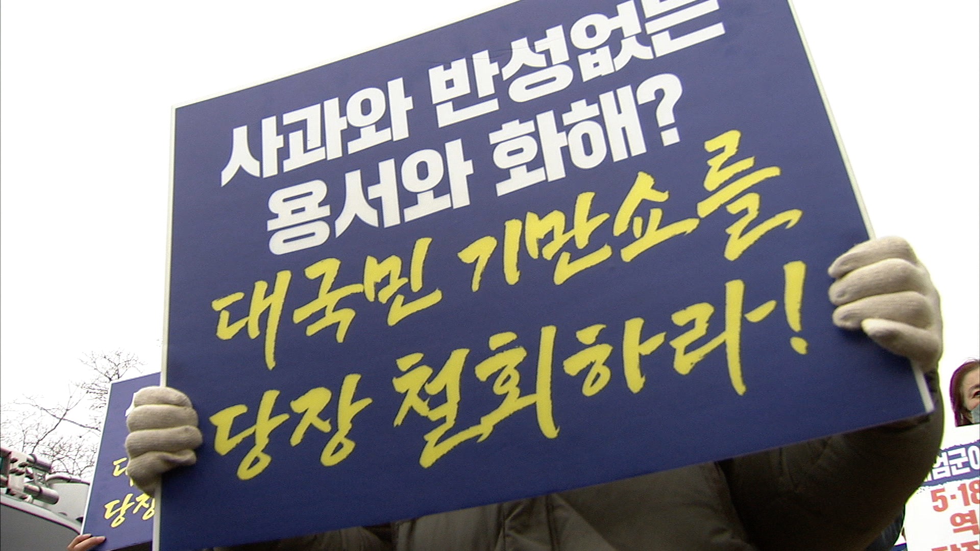 5.18 일부단체들이 특전사동지회와 치른 화합 행사가 파행으로 치러졌습니다. 5.18 부상자회와 공로자회는 특전사동지회를 초청해 광주 5.18 기념문화센터에서 대국민 공동선언식을 치렀지만 계엄군의 진정한 사과와 반성 없는 행사를 반대하는 시민단체들이 반발하면서 고성과 몸싸움이 벌어지는 등 파행으로 치러졌습니다...