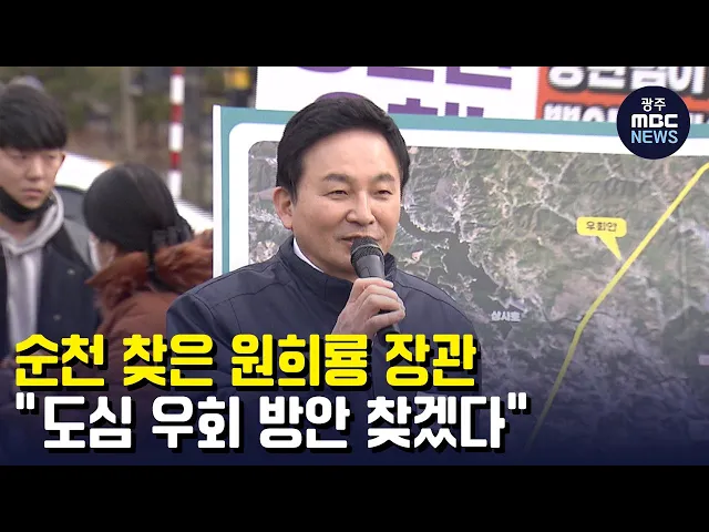 원희룡 국토교통부 장관이 오늘(16), 순천시를 방문해 경전선 도심 통과 구간에 대한 주민 의견을 청취했습니다. 원희룡 장관은 오늘(16), 순천만국제습지센터와 오천그린광장을 방문해 국제정원박람회 준비 상황을 점검한데 이어, 경전선 도심 통과 구간인 오천교차로에서 지역 주민들을 만났습니다. 노관규 순천시장은 이...