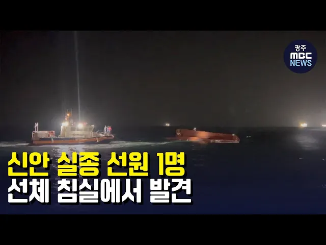 (앵커)지난 4일 밤 전남 신안 해상에서 전복된 '청보호'의 실종자 수색작업이 밤새 계속됐는데요 실종자 1명이 선체 내부에서 발견됐습니다. 청보호를 인양할 크레인 등도 어젯 밤 사고해역에 도착했습니다. 박종호 기자가 보도합니다. (기자) 오늘 새벽 3시 22분쯤 전남 신안 해상에서 전복된 '청보호' 선체 내부 침실에서...