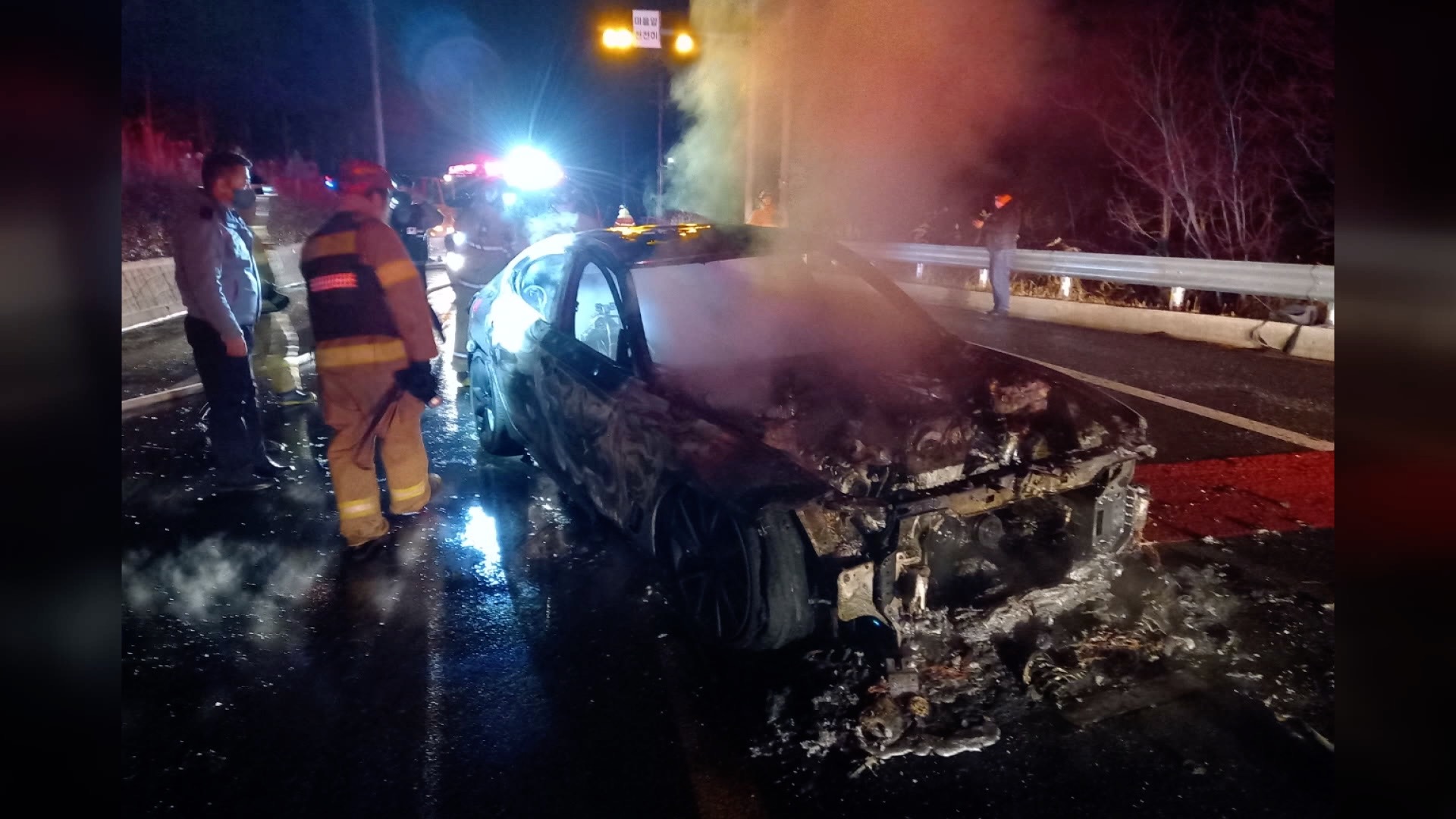 해남에서 가드레일 들이받은 승용차 화재.. 50대 숨져