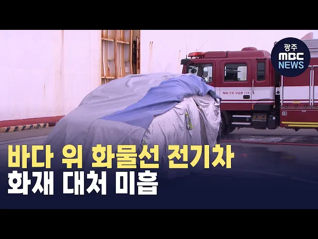 (앵커) 30여 명의 사상자를 낸 경기도 화성 배터리 공장 화재는배터리 특성상 불끄기 쉽지 않아 큰 피해로 이어집니다.전기차 수출량이 많은 광양항도 화물선을 통해 이런 배터리를 운반하고 있는데,대응 매뉴얼조차 없습니다.최황지 기자가 취재했습니다.(기자) SUV 한 대에 은색 차단포가 덮힙니다. 차 하부로는 거센 물...