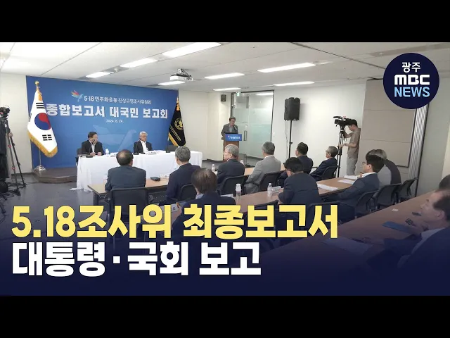 5.18 진상규명조사위원회가 4년 6개월 간의 공식 활동을 마치고 최종 보고서를 대통령과 국회에 보고했습니다. 5.18 조사위는 오늘(24) 서울 중구 5.18 조사위 대강당에서 '종합 보고서 대국민 보고회'를 열고 조사결과와 권고사항이 포함된 종합보고서를 작성해 대통령과 국회에 보고했다고 밝혔습니다. 이 종합보고서...