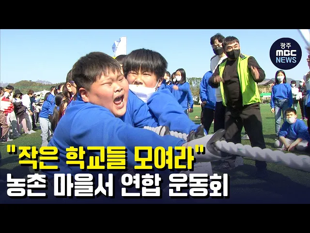 (앵커)학생 수가 적은 학교들은 대규모 체육대회를 열기 어려운데요. 담양 농촌마을에서 소규모 학교들이 한데 모여 연합 운동회를 열었다고 합니다. 이다현 기자가 전해드립니다. (기자)청팀과 백팀 단체복을 입은 어린이들이 호루라기 소리와 함께 힘차게 달려나갑니다. "청팀 이겨라! 청팀 이겨라!" 커다란 공을 있는 힘...
