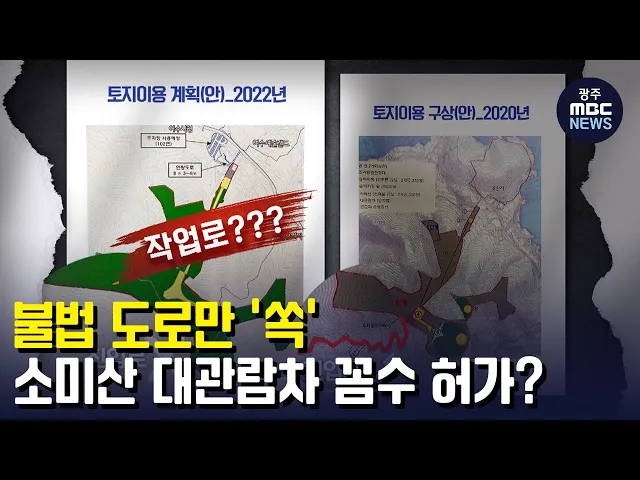 (앵커) 여수 소미산 대관람차 추진을 둘러싸고 난개발 논란이 다시 불거지고 있습니다. 얼마전 제시된 업체 측의 대관람차 사업 계획서를 들여다보니, 2년전 문제가 됐던 불법 도로만 빠져 있어 처벌과 불허가를 피하기 위한 꼼수 개발이라는 지적이 이어지고 있습니다. 강서영 기자입니다. (기자) 2020년 주식회사 공감이 ...