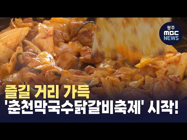 (앵커) 강원도 춘천의 대표 향토 음식 축제인막국수닭갈비축제가 시작됐습니다.올해는 해외 여러 나라를 초청해이색 음식도 선보이는데요.막국수와 닭갈비뿐만 아니라 다양한 먹거리와, 볼거리로 가득 찬 축제 현장을 춘천문화방송 이승연 기자가 소개합니다.(기자) 축제장으로 변한 춘천 레고랜드 주차장.가느다란 메밀면...