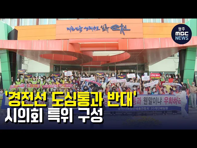 (앵커) 요즘 순천 시내에는 거리마다 경전선 도심통과 반대 현수막이 즐비합니다. 순천시의회가 이같은 시민 정서를 반영해 특위를 구성하고, 공식적인 반대 운동을 시작해 벌써부터 특위 활동 결과가 주목을 받고 있습니다. 최우식 기자가 보도합니다. (기자) 순천시청 인근 도로변에 경전선 도심 통과를 반대한다는 내용...