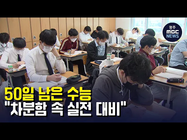 (앵커) 2023학년도 대학수학능력시험이 50일 앞으로 다가왔습니다. 수험생들은 차분한 분위기 속에서 막바지 시험 대비에 한창입니다. 유민호 기자입니다. (기자) 수능을 50일 앞둔 고등학교 3학년 교실입니다. 마스크를 쓴 채 국어 수업을 듣는 학생들의 표정이 어느 때보다 진지합니다. "겨울 혹독한 시절을 이겨내는 사...