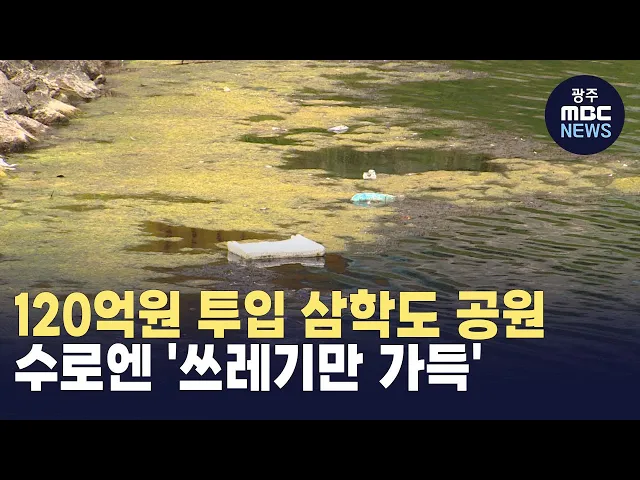 (앵커) 목포시가 시민들의 휴식공간은 물론 대표적인 관광지로 활용하고자 조성했던 삼학도 인공수로의 수질 오염이 심각합니다.각종 쓰레기와 녹조는 물론 벌레들로 들끓고 있는데, 목포시는 그동안 수질 관리 등 기본적인 관리를 위한 예산조차 세우지 않았던 것으로 드러났습니다.이 공원 조성에 120억원이 들어갔습니다...