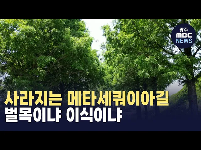 (앵커) 수십 년 된 도로 가로수인 메타세쿼이아 수십그루가 확장 공사로 인해 잘려나갈 위기에 놓였습니다. 나무를 옮겨 심는 것보다, 벌목하는 게 비용이 저렴하다는데, 아름다운 가로수길이 사라지는 것에 대한 시민들의 아쉬움은 큽니다. 최황지 기자의 보도입니다. (기자) 여수 오천산단과 만흥동을 잇는 도로입니다.곧...