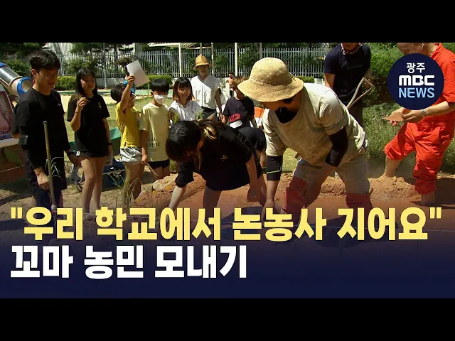(앵커) 구들장 논을 아십니까? 물이 귀했던 완도 청산도에서 논 바닥에 구들장을 깔고 벼농사를 지었던 전통 농사 방식인데요. 광주의 한 초등학교에 구들장 논이 재현돼 꼬마 농민들이 모를 심었습니다. 모내기 현장을 박수인 기자가 다녀왔습니다. (기자) 화단에 만들어진 조그만 논 앞으로 꼬마 농민들이 길게 줄을 섰...
