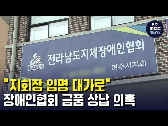 (앵커) 여수의 한 장애인협회에서 금품 상납 의혹이 제기됐습니다. 인사권을 가진 전남도협회장이 지회장 임명을 대가로 지역 지회장에게 돈과 사과, 쌀 등 수천만 원 상당을 요구해왔다는 건데요. 도협회장은 먼저 요구한 적이 없다며 부인했습니다. 김단비 기자입니다. (기자)지난 2020년 전남지체장애인협회 여수지회장...