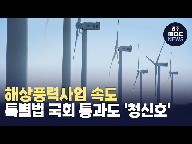 (앵커) 전라남도가 핵심 현안 가운데 하나인해상풍력사업에 속도를 내고 있습니다.이를 뒷받침하기 위한 해상풍력지원특별법의22대 국회 통과에도 청신호가 켜졌습니다.김양훈 기자가 보도합니다.(기자)단일 단지로는 세계 최대 규모인신안 8.2 기가와트 해상풍력단지전남은 신안을 포함해 30 기가와트 대규모해상풍력 사업...