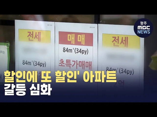 (앵커) 광양에서 아파트 할인 분양 논란이 다시 불거졌습니다.지난해 1차 할인 분양 때보다 더 낮은 가격에 미분양 물량이 나오면서입주민과 건설사가 갈등을 빚고 있습니다.보도에 김단비 기자입니다.(기자) 지난해 8천만 원 할인 분양으로떠들썩했던 광양의 한 아파트.당시 건설사는 앞으로 할인 분양을 하지 않겠다는 약...