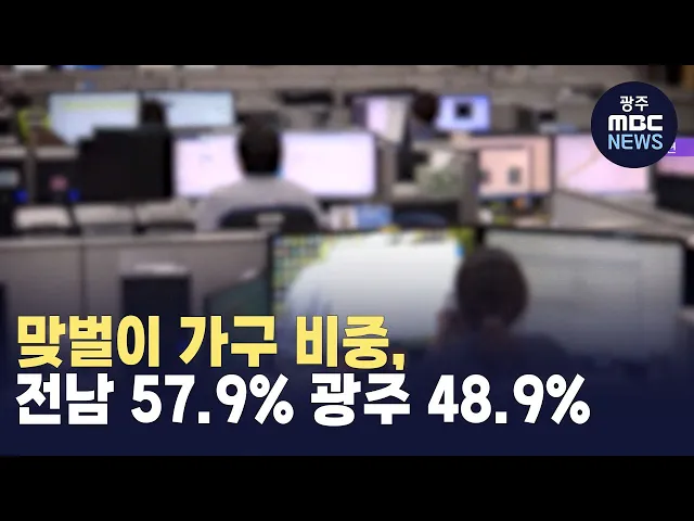 전남의 맞벌이 가구 비중이 다른 지역에 비해상대적으로 높게 나타났습니다.통계청이 발표한 지역별 고용조사 자료에 따르면지난해 기준으로 전남의 유배우자 가구는 47만 가구로이 가운데 57.9%에 해당하는 27만여 가구가 맞벌이를 하는 것으로 조사됐습니다.이는 전국에서 제주도 다음으로 높은 수치로 농어업 종사자가 ...