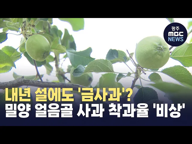 (앵커) 지난해에 이어 올해도 이상기후로 경남 밀양시 얼음골 사과 생산량이 크게 줄 것으로 보입니다.늦가을에 수확해 주로 설에 판매하는부사 품종이 대부분이어서 내년 설에도 '금사과'란 말이 나오지 않을까 우려됩니다. MBC경남 문철진 기자가 보도합니다.(기자) 밀양 얼음골의 한 사과농장.열매가 되었어야 할 꽃이 ...