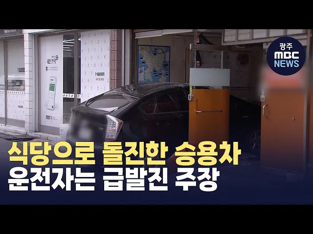 (앵커) 오늘(17) 오후 여수에서는 60대 운전자가 몰던 승용차가 주차장 인근 식당 안으로 돌진했습니다.다행히 식당에는 손님이 없어큰 인명피해는 없었지만식당 주인이 다쳤습니다.운전자는 급발진을 주장하고 있는데,경찰은 운전 미숙으로 인한 사고로추정하고 있습니다.김단비 기자입니다. (기자) 주차장에 정차한 차량 ...