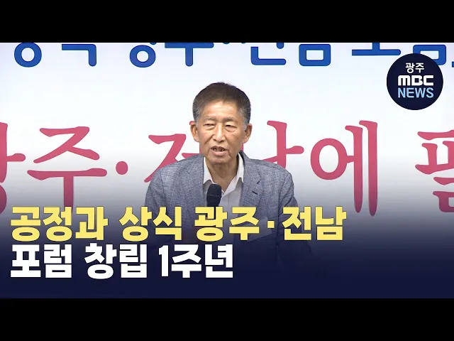 공정과 상식 광주전남포럼이 오늘(15) 오후 전일빌딩에서 창립 1주년을 맞아 기념식을 가졌습니다. 광주 전남 지역에서 보수의 가치인 자유와 공정을 추구하기 위해 조직된 이 포럼의 기념식에선 주기환 대통령 민생특보, 전주혜 국민의힘 비대위원 등이 축사를 전하고 주동식 포럼 고문의 특강이 이어졌습니다. 참석자들은...
