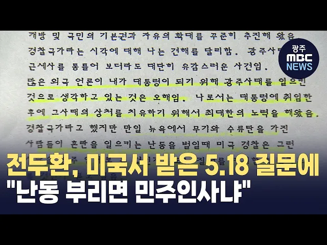 전두환, 미국서 받은 5.18 질문에 "난동 부리면 민주인사냐"