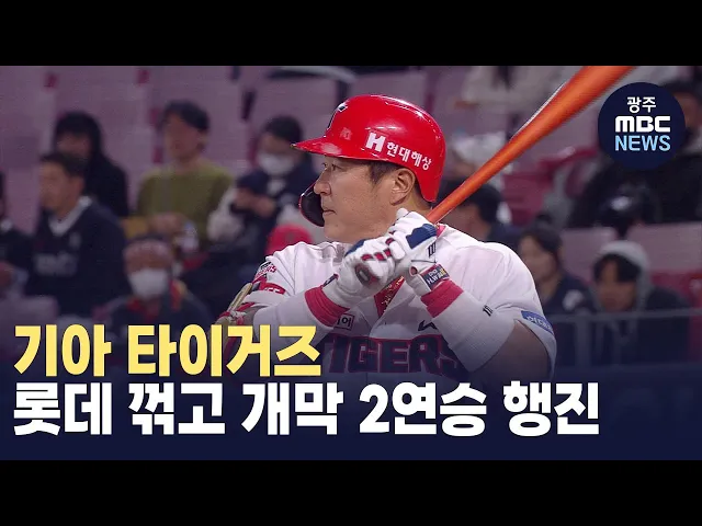 프로야구 기아 타이거즈가 롯데를 꺾고 개막 2연승 행진을 이어갔습니다.기아 타이거즈는어제(26) 열린 롯데와의 경기에서팀내 최고참 최형우의 동점 홈런과소크라테스의 역전 결승타에 힘입어2대 1로 승리를 거뒀습니다.기아는 이로써지난 23일 키움과의 올 시즌 개막전에 이어기분좋은 2연승 행진을 이어갔습니다.선말 양...