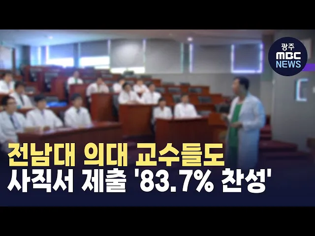 전남대학교 의대 교수들이 사직서 제출로의료계 집단행동에 동참하기로 했습니다.전남대 의대 교수 비상대책위에 따르면소속 교수들을 상대로 설문조사한 결과83.7%가 자발적인 사직서 제출에 찬성했습니다.사직서 제출에 찬성한 교수의 64%는 또전국의과대학교 교수협의회가 집단 사직서를 제출하기로 결정한 25일에 맞춰...